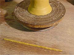 きれいに円形になるように、ろくろに円を書いておくといいでしょう。(画像はうちにあった古いロクロを使ってます。)