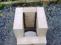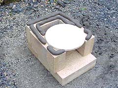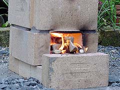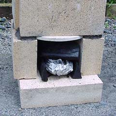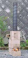 燃え切るのを待って、焚き口と、煙突の上をレンガでフタしましょう。