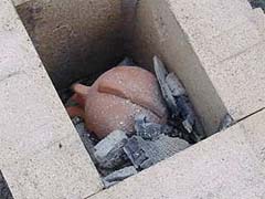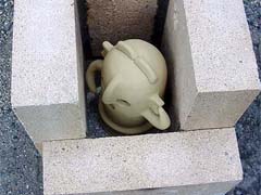 オリジナル企画商品コーナーのセットで、はにわを焼いてみました。まずは、窯を組み立てて、作品を入れるところから。