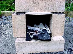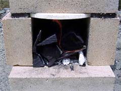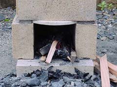 ここからは、お薦めしません。熱くなったレンガを動かして炭を入れたりして、無茶をしてます。