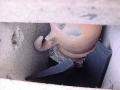900度くらいまで上がりました。(温度はこの画像の左に見えている穴から熱電対で測りました)炭に接していた部分はもっと温度が上がっていたようです。